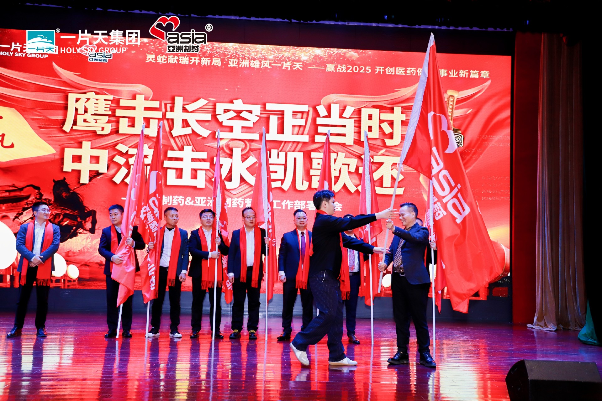 接下来,就来到大会最万众瞩目的时刻了。面面鲜红的旌旗飘扬,在会场掀起荣耀与自豪的海浪,从陆董事长的手里传到各事业部认真人手里,象征着使命与责任的转达。列位事业部认真人摇旗助威,脸上洋溢着坚定与自信的笑容,眼中闪灼着对未来的无限神往与斗志。